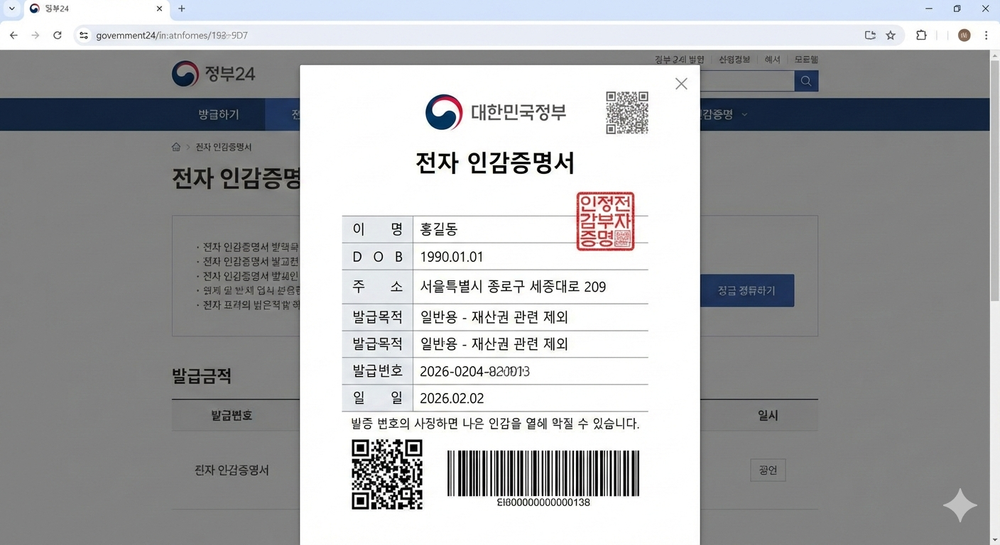 - 정부24 앱 이용: 앱의 '문서진위확인' 메뉴에서 증명서 하단의 바코드를 스캔하면 1초 만에 확인 가능합니다.